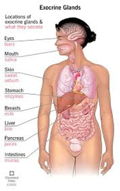 The exocrine system is a collection of glands that produce and release fluids and substances through a duct or opening onto the body surface.