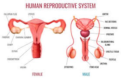 The reproductive organs of both males and females, while they have different purposes, secrete hormones that keep the body healthy and work together to produce an embryo with the sperm from a male and an egg from a female. Thus, keeping our species from going extinct.